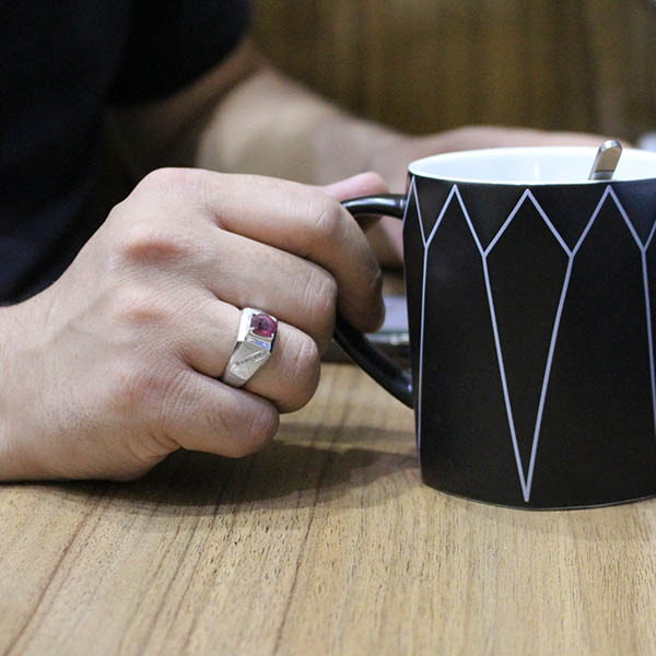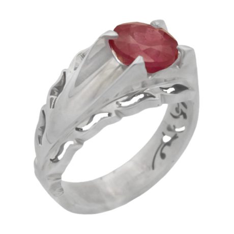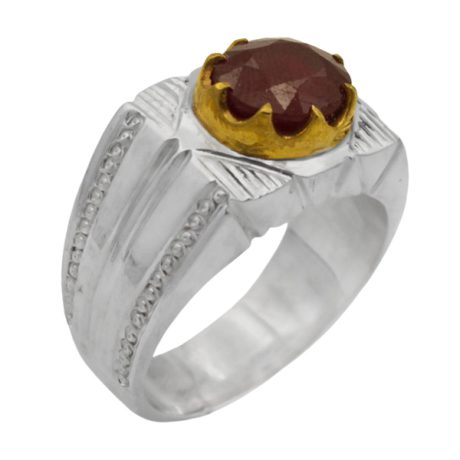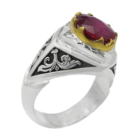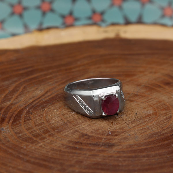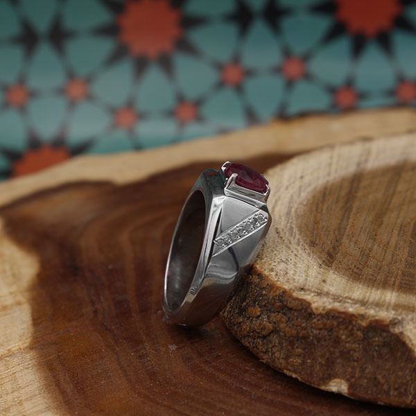 انگشتر یاقوت سرخ الماس تراش نقره مردانه دست ساز طرح فلاح