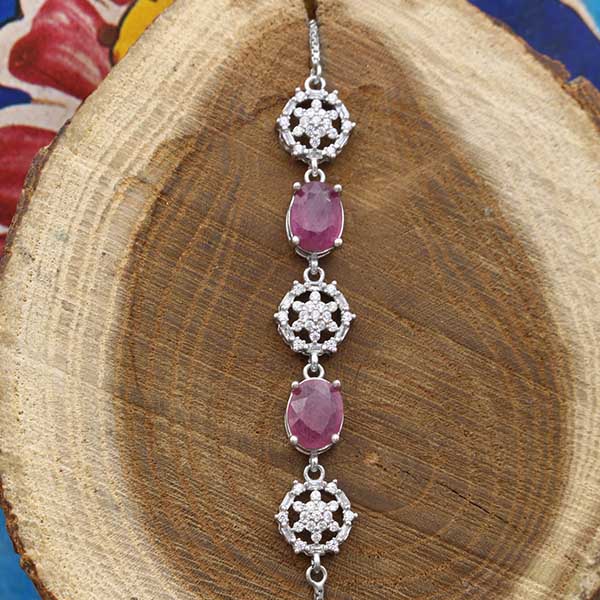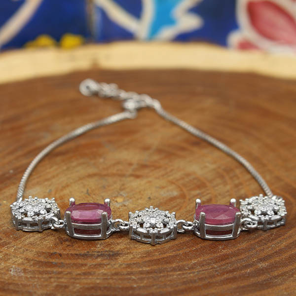دستبند یاقوت سرخ الماس تراش نقره زنانه طرح فتانه