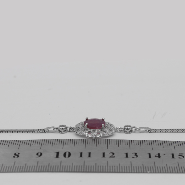 دستبند یاقوت سرخ الماس تراش نقره زنانه طرح گل اندام