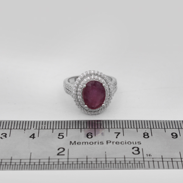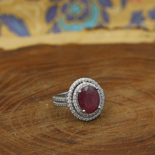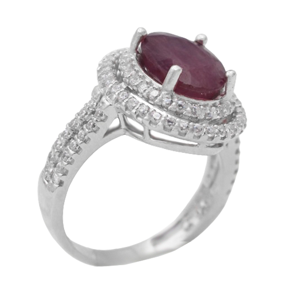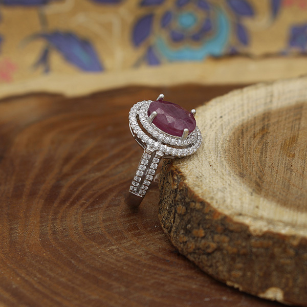 انگشتر یاقوت سرخ الماس تراش نقره زنانه طرح حریر