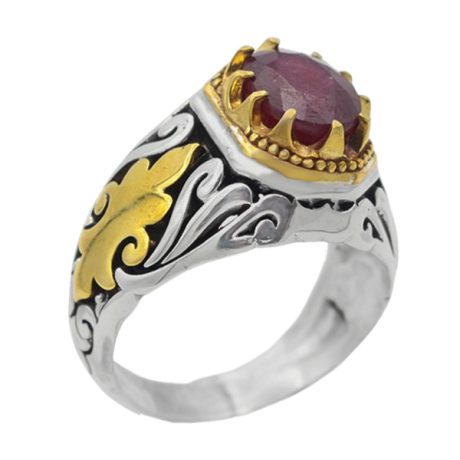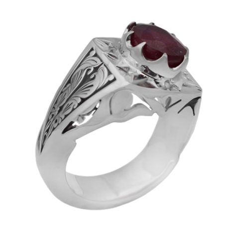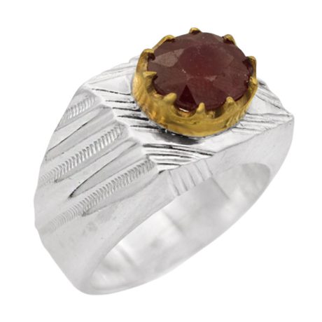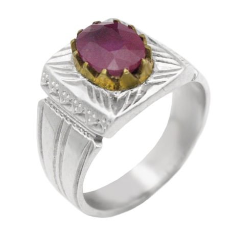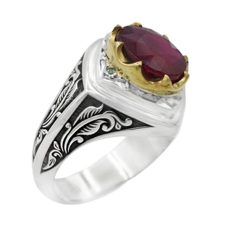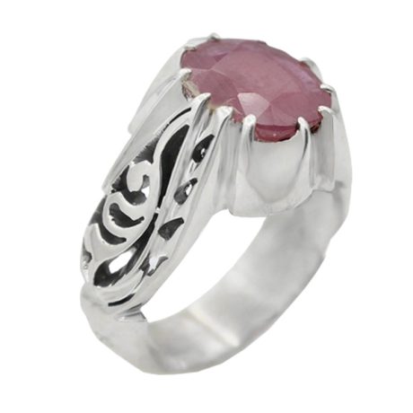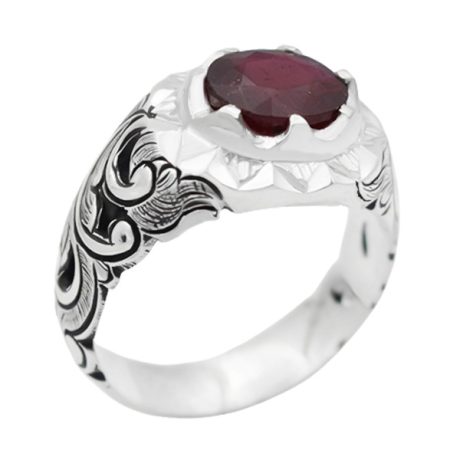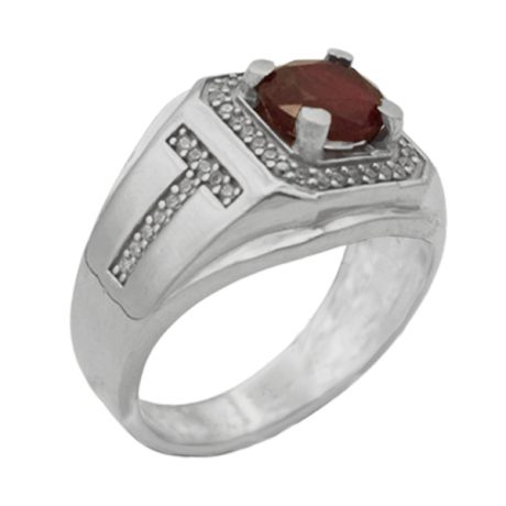 انگشتر یاقوت سرخ الماس تراش نقره مردانه طرح ایدون