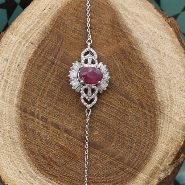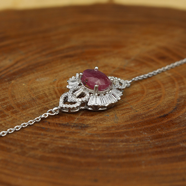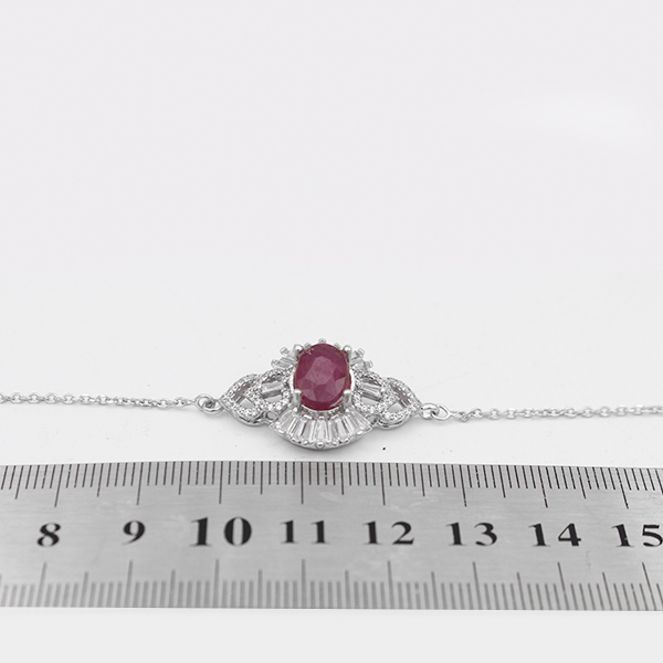 دستبند یاقوت سرخ الماس تراش نقره زنانه طرح نفیسه