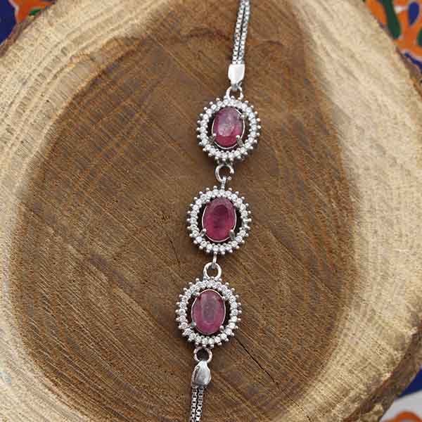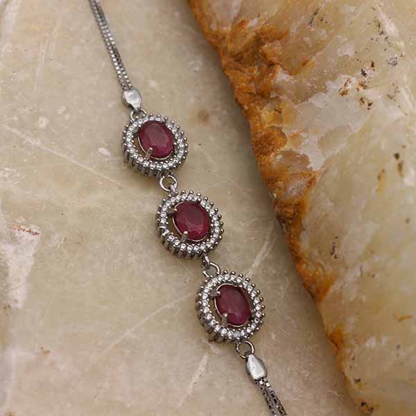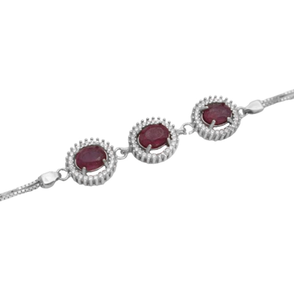 دستبند یاقوت سرخ الماس تراش نقره زنانه طرح نسترن