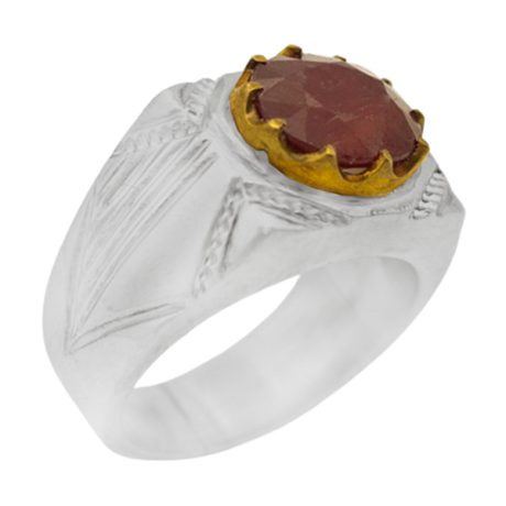 انگشتر یاقوت سرخ الماس تراش نقره مردانه دست ساز طرح سپهر