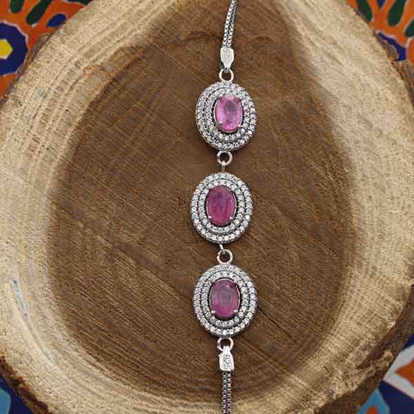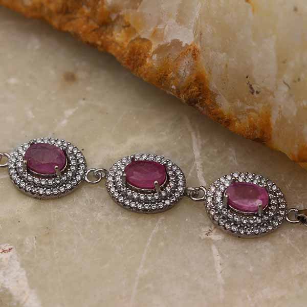 دستبند یاقوت سرخ الماس تراش نقره زنانه طرح شادی