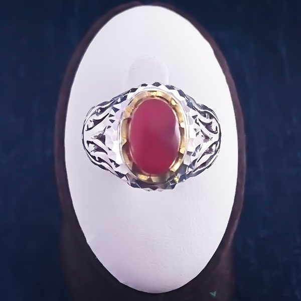 انگشتر طرح دایان کاملا کار دست بوده و دارای طرح شبکه ای می باشد. در اطراف نگین چنگ های طلایی نگین یک دست سرخ عقیق یمنی را در بر گرفته اند که این ترکیب طلایی و سرخ بسیار جلوه زیبایی را رقم زده است. همانطور که بیان شد نگین انگشتر نیز عقیق سرخ یمنی اصل می باشد که دارای تراش عالی و رنگ جذاب می باشد. جنس انگشتر از نقره با عیار ۹۲۵ بوده و این انگشتر قابلیت سایز شدن برای هر سایز انگشتی را دارد.