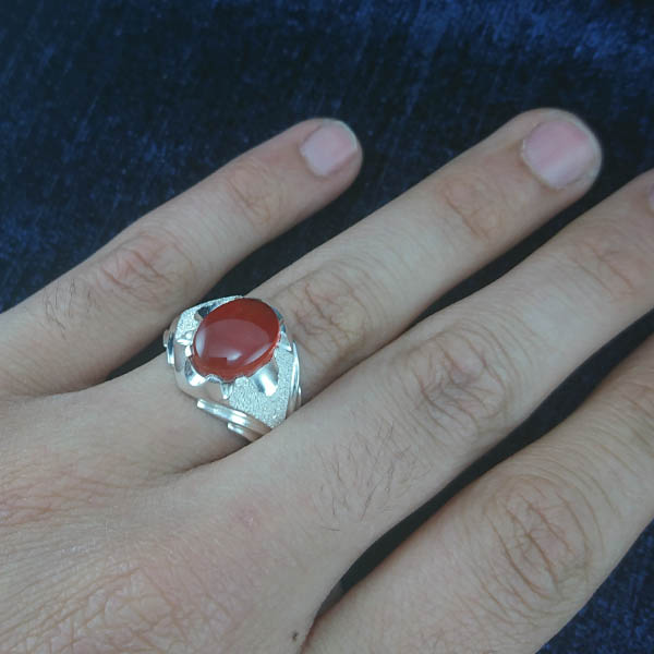 انگشتر طرح شاهرخ با نگین عقیق سرخ یمنی می باشد. نگین انگشتر عقیق سرخ یمنی اصیل با رنگی زیبا و بدون لکه و رگه است. رکاب انگشتر از استحکام بالا و دارای جلای بسیار زیبایی می باشد. رکاب این انگشتر طرحی ساده دارد که برای افراد سادهپسند مناسب است. جنس انگشتر از نقره با عیار ۹۲۵ بوده و انگشتر طرح شاهرخ قابلیت سایز شدن برای هر سایز انگشتی را دارد.