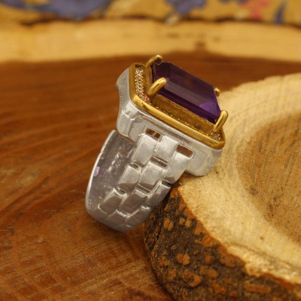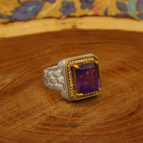 ۴- در مجموع این انگشتر بنفش یک محافظ و پاکساز روانی است. همچنین اگر شخصی بیمار باشد قرار دادن قطعه ای از این گوهر در کنار خود می تواند محیط روانی بدن فرد و سطوح انرژی را در سطحی از تعادل و بهزیستی نگه دارد.