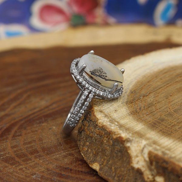انگشتر عقیق شجر نقره زنانه طرح رومینا