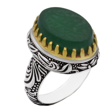 انگشتر عقیق سبز نقره مردانه طرح صائب