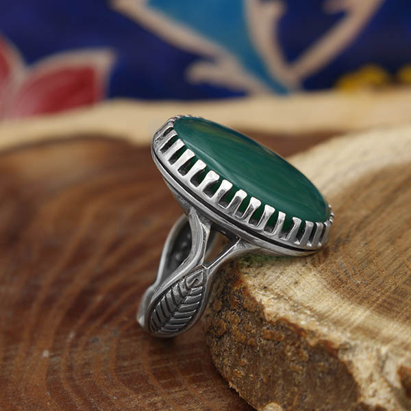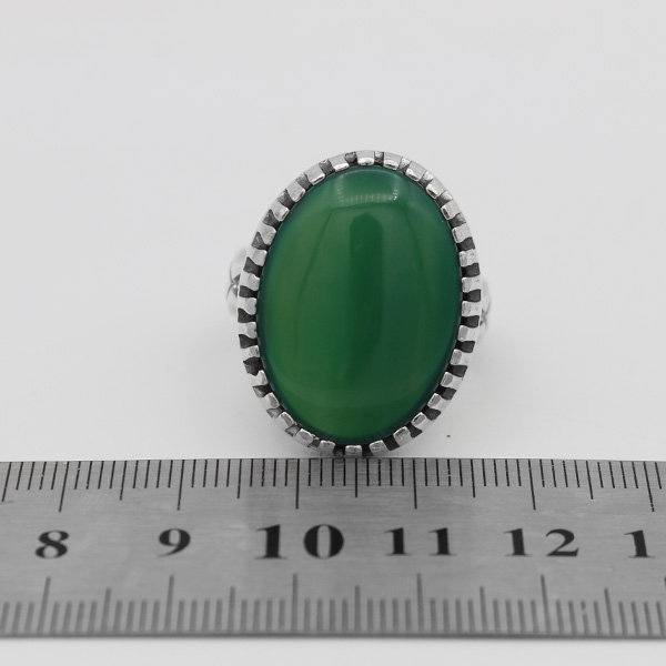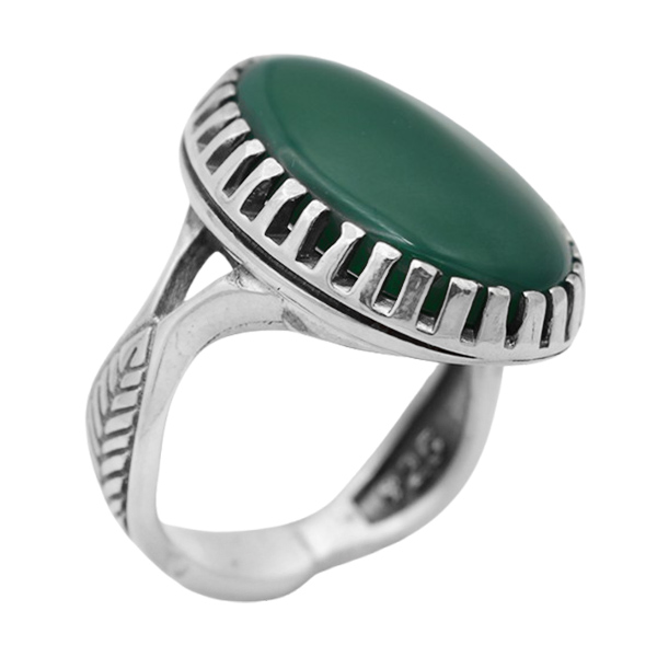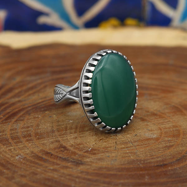 انگشتر عقیق سبز نقره مردانه طرح صاحب