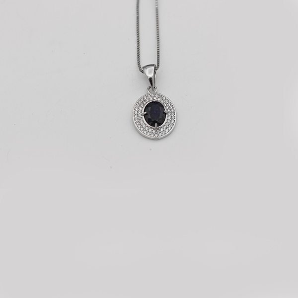 گردنبند یاقوت کبود الماس تراش نقره زنانه طرح آفتابگردان