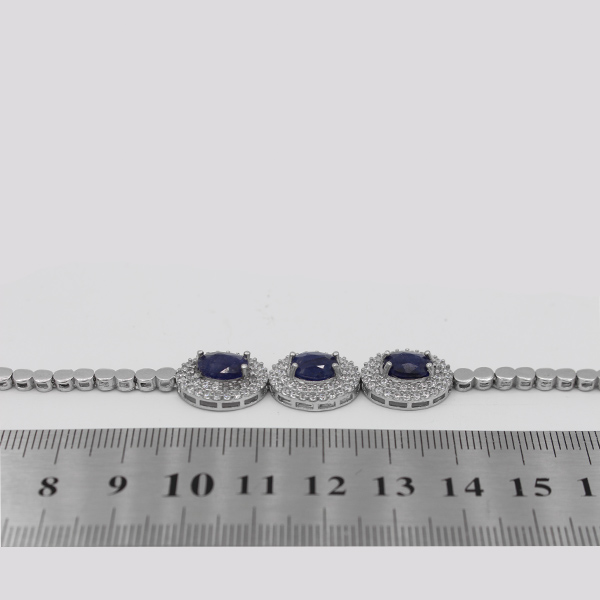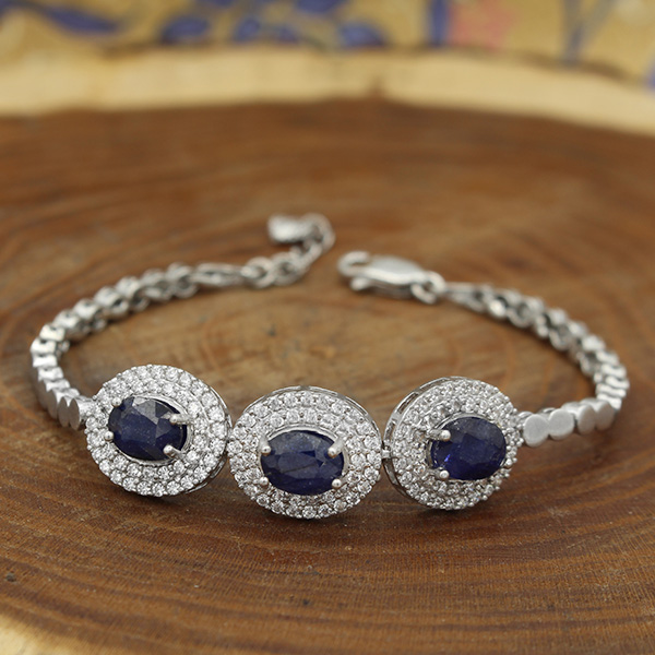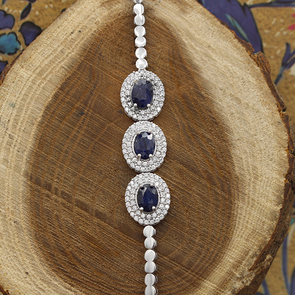 دستبند یاقوت کبود الماس تراش نقره زنانه طرح آنسه