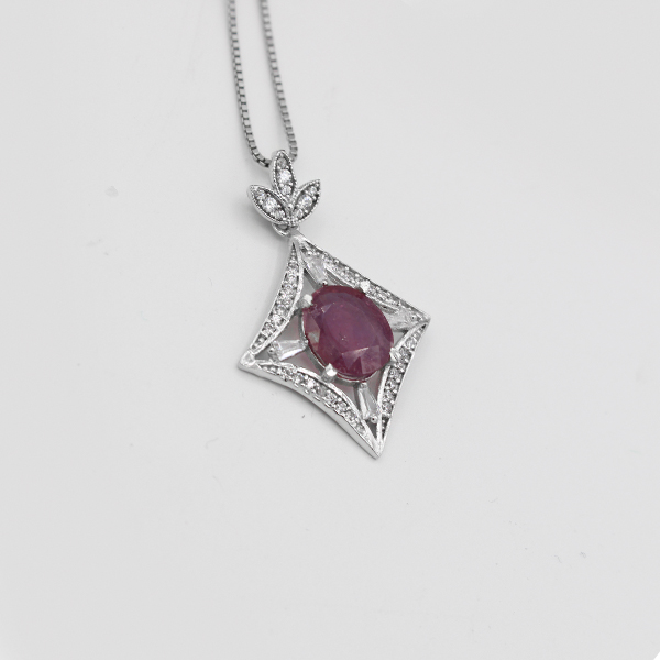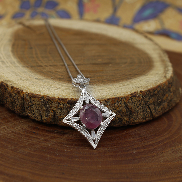 گردنبند یاقوت سرخ الماس تراش نقره زنانه طرح آیلار
