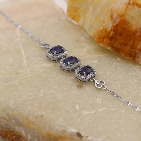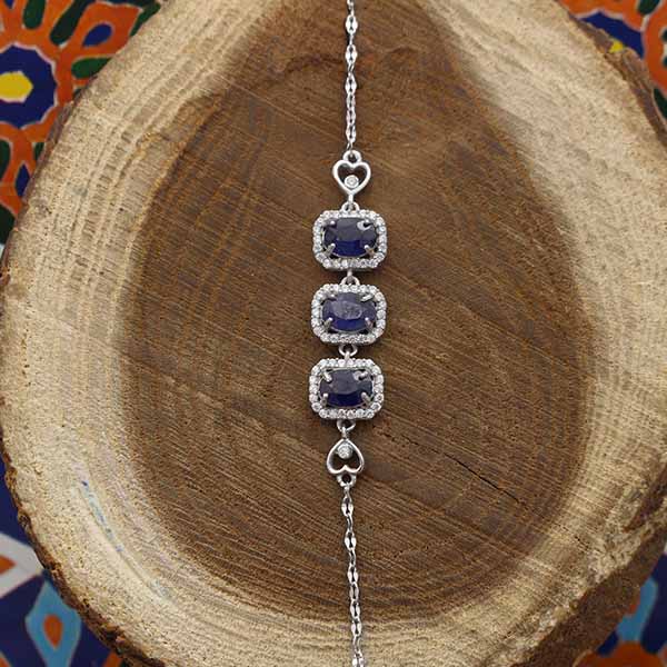 دستبند یاقوت کبود الماس تراش نقره زنانه طرح باران