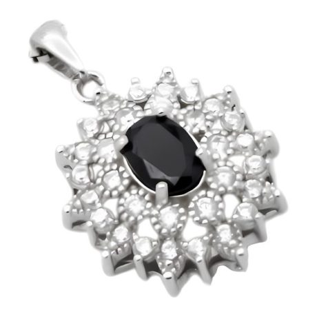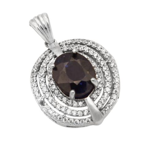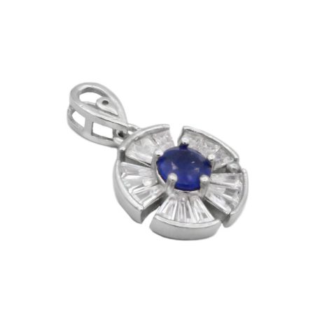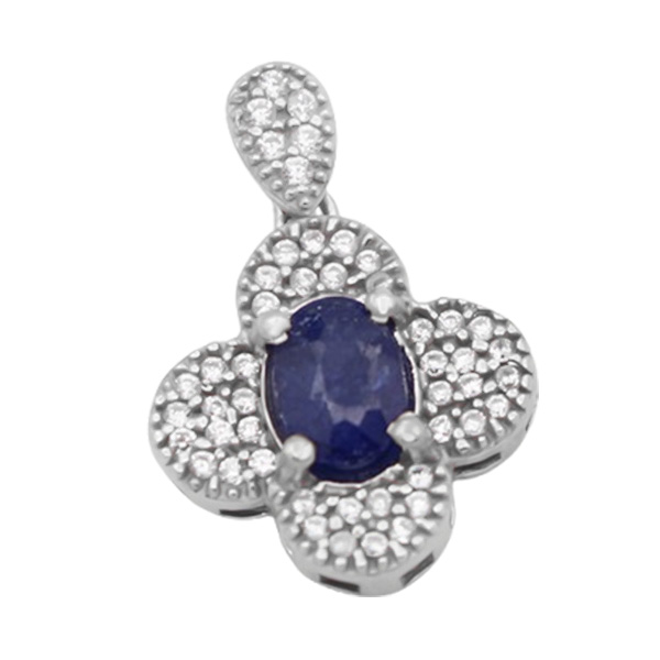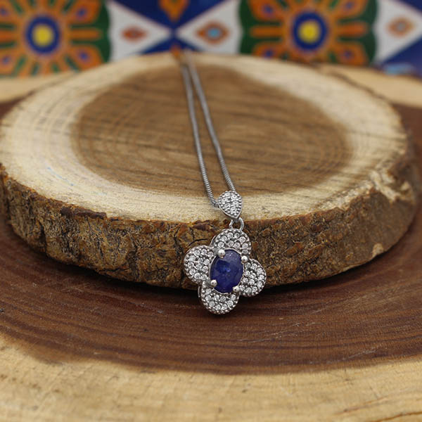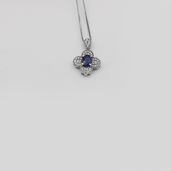 گردنبند یاقوت کبود الماس تراش نقره زنانه طرح الهام