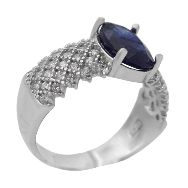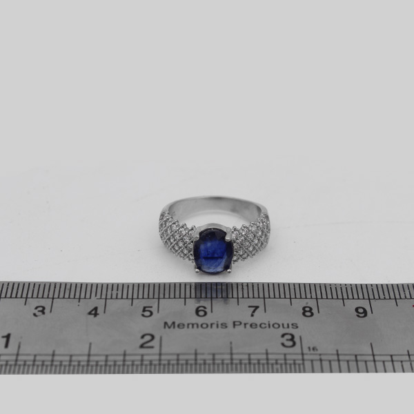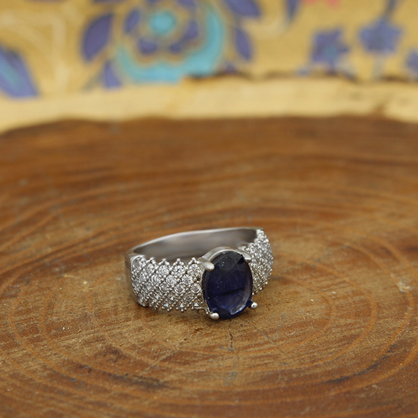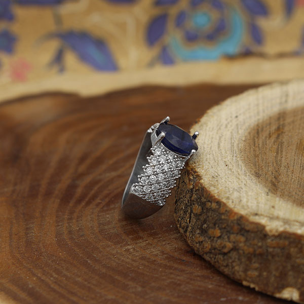 انگشتر یاقوت کبود الماس تراش نقره زنانه طرح فرح 2