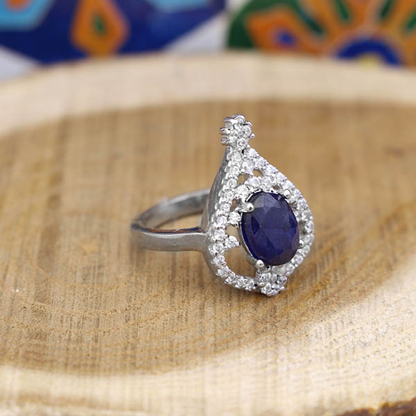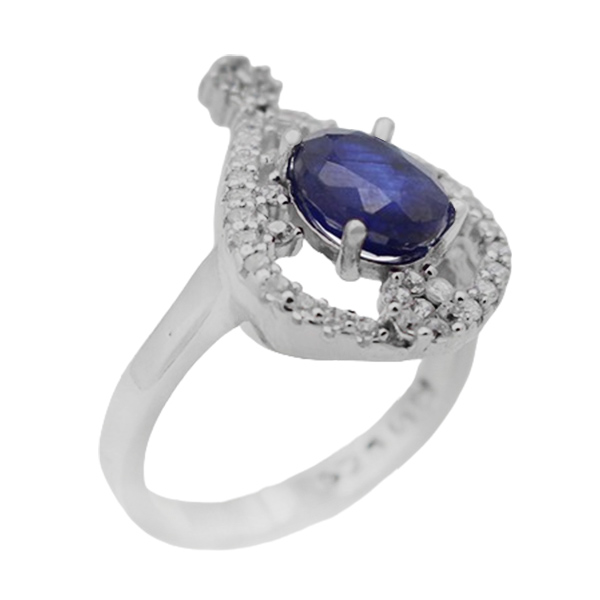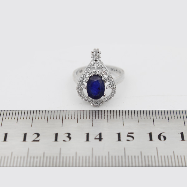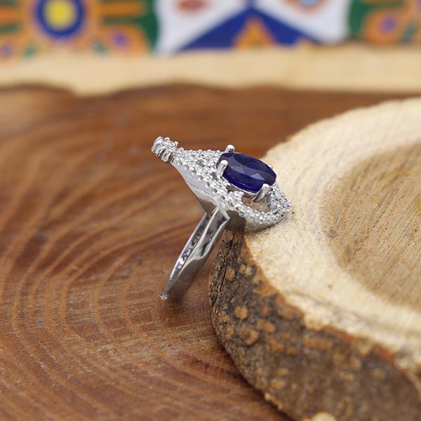 انگشتر یاقوت کبود الماس تراش نقره زنانه طرح فوزیه