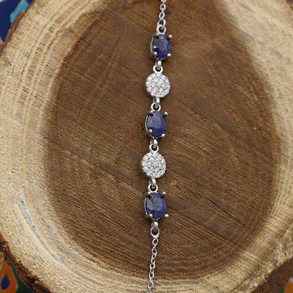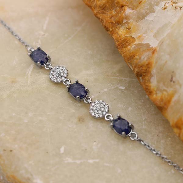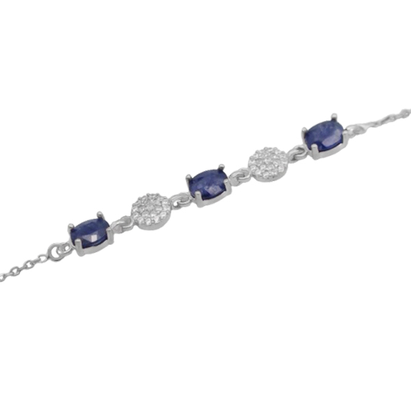 دستبند یاقوت کبود الماس تراش نقره زنانه طرح گلچهره