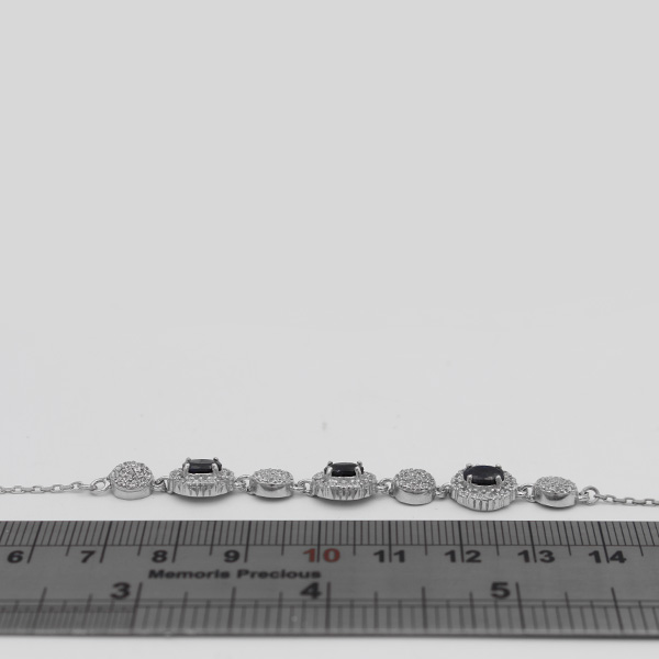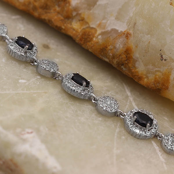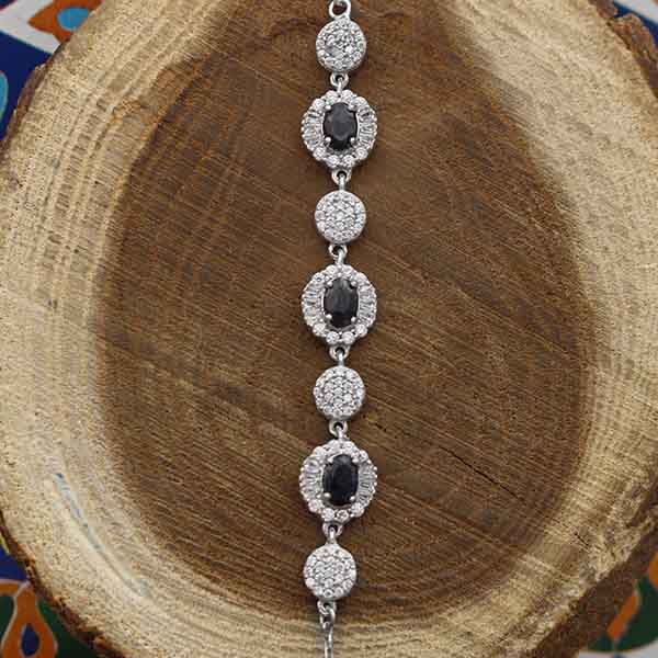 دستبند یاقوت کبود الماس تراش نقره زنانه طرح هانی