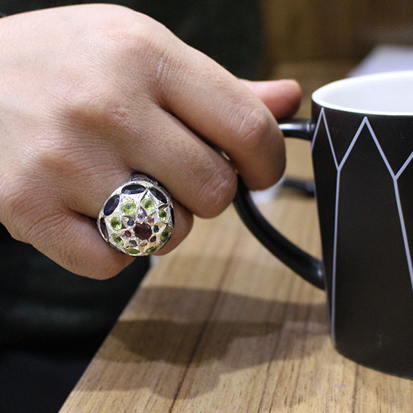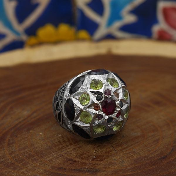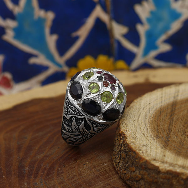 انگشتر چند سنگ نقره مردانه دست ساز طرح فاخر ایزدیار