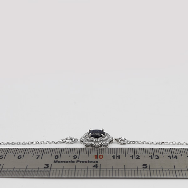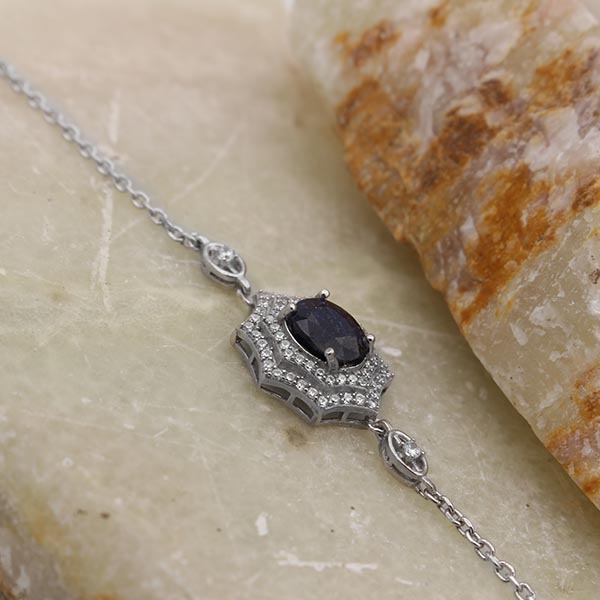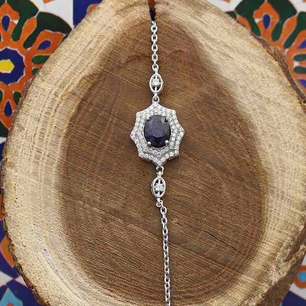 دستبند یاقوت کبود الماس تراش نقره زنانه طرح کیمیا
