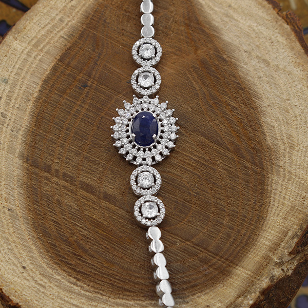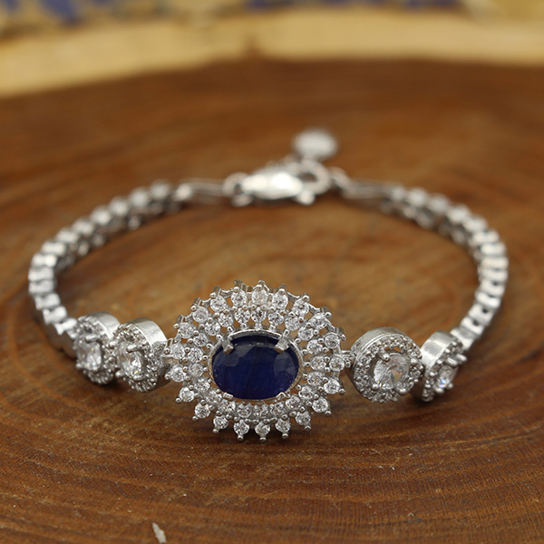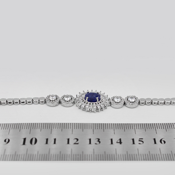دستبند یاقوت کبود الماس تراش نقره زنانه طرح لادن