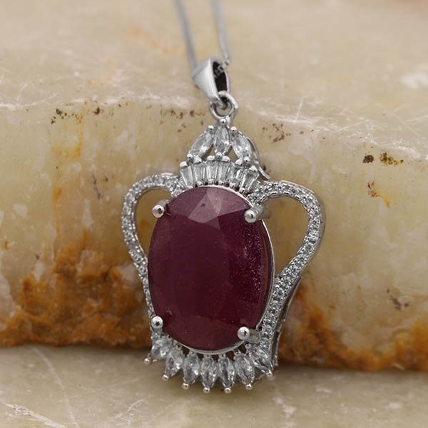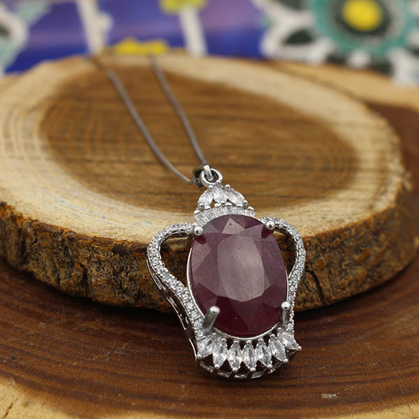گردنبند یاقوت سرخ الماس تراش نقره زنانه طرح لونا