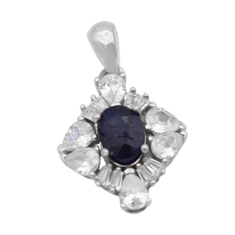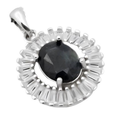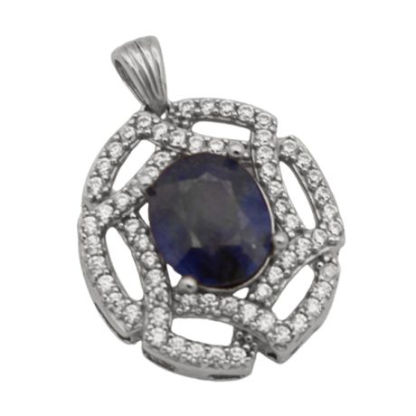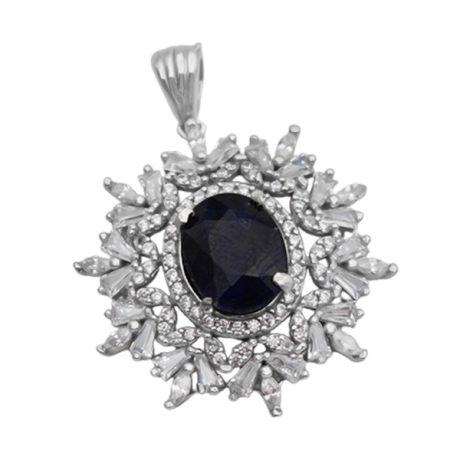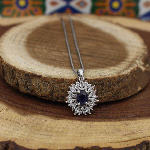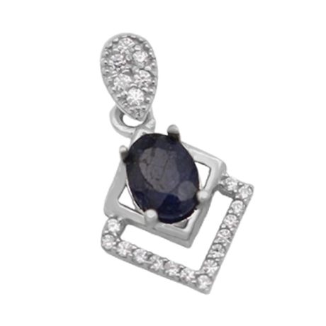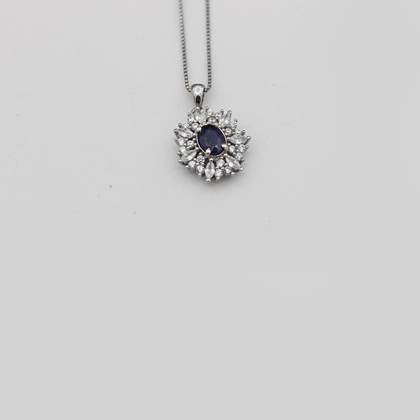 گردنبند یاقوت کبود الماس تراش نقره زنانه طرح ماه