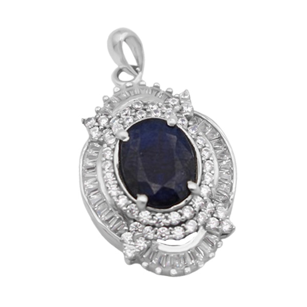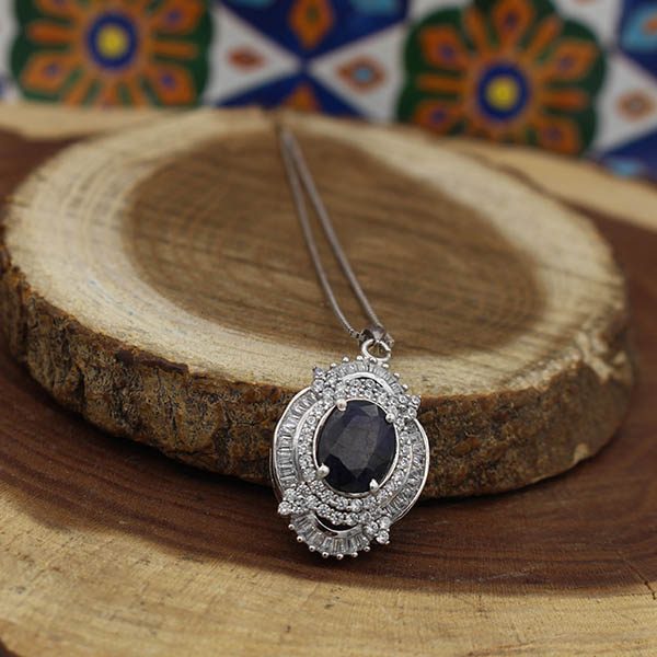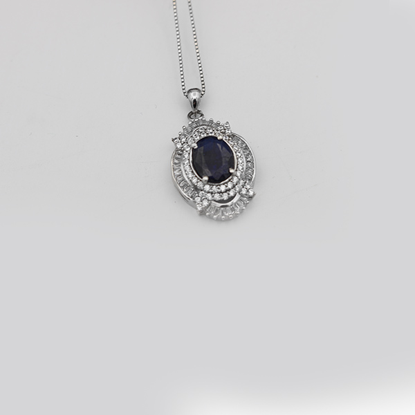 گردنبند یاقوت کبود الماس تراش نقره زنانه طرح ملیکا