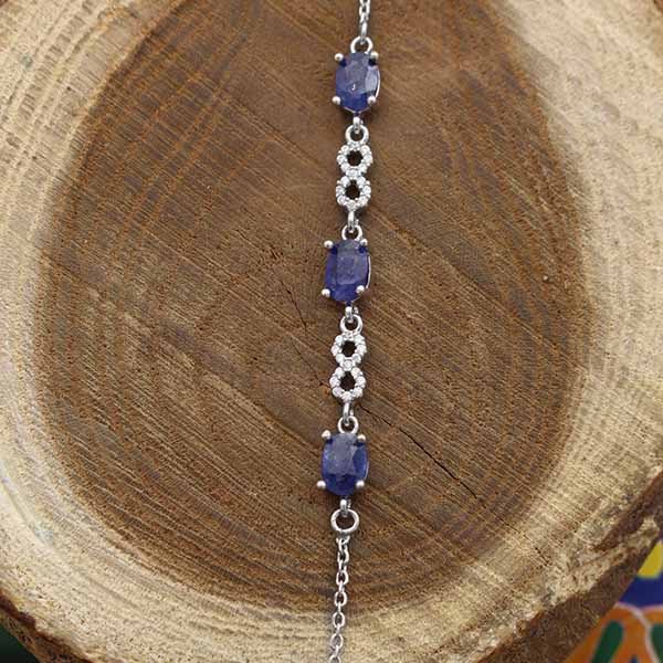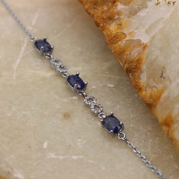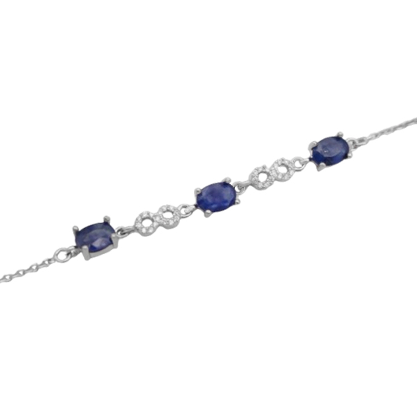 دستبند یاقوت کبود الماس تراش نقره زنانه طرح نازگل