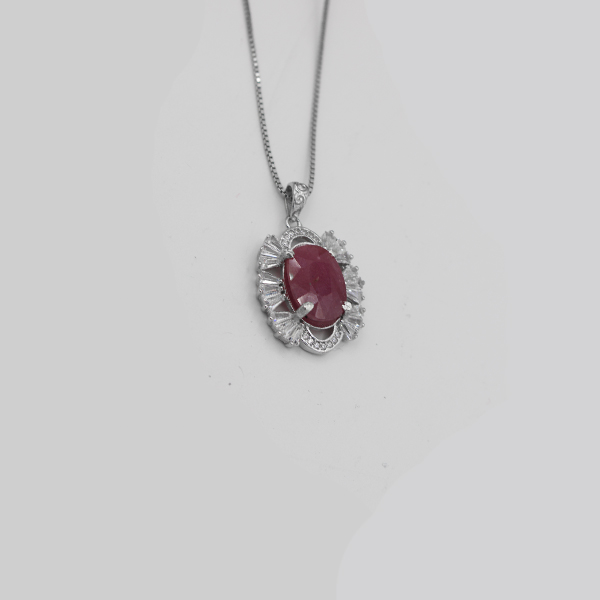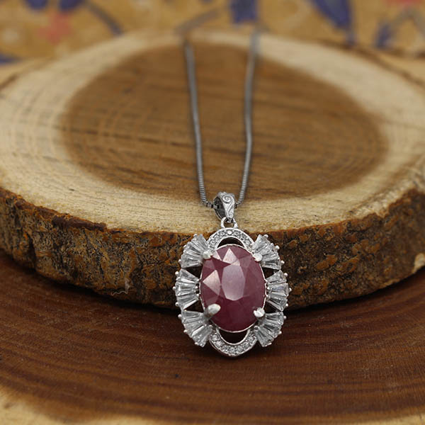 گردنبند یاقوت سرخ الماس تراش نقره زنانه طرح نورجهان