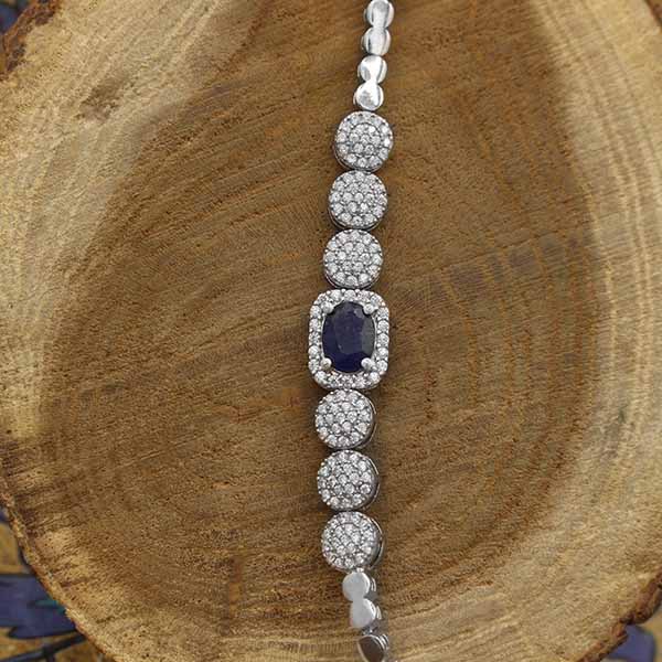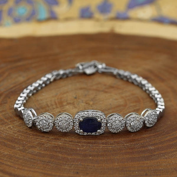 دستبند یاقوت کبود الماس تراش نقره زنانه طرح روحینا