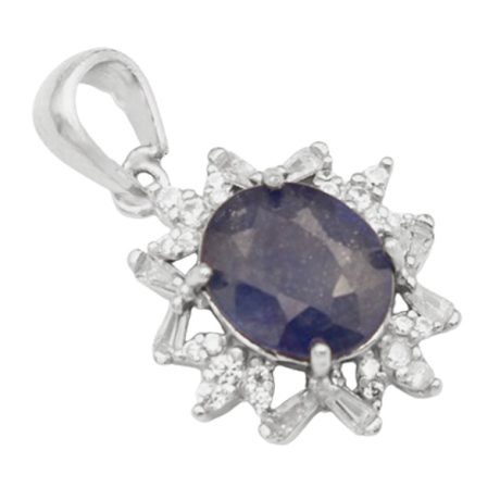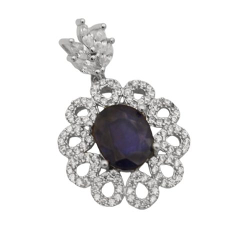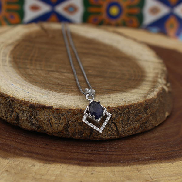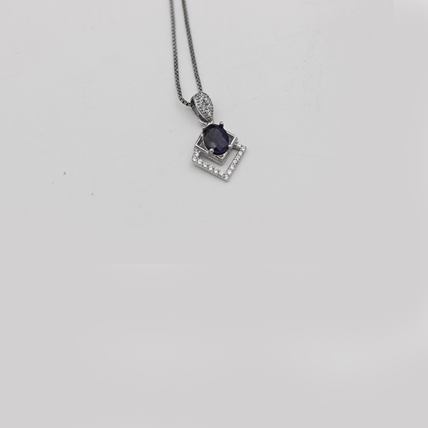 گردنبند یاقوت کبود الماس تراش نقره زنانه طرح شیدا