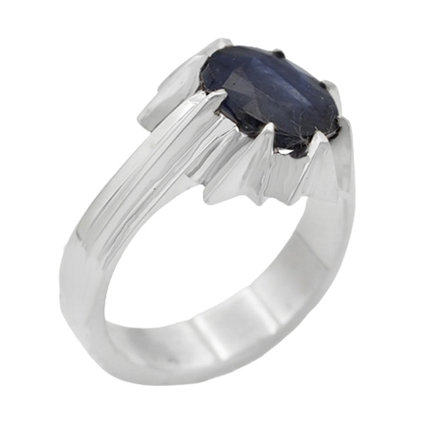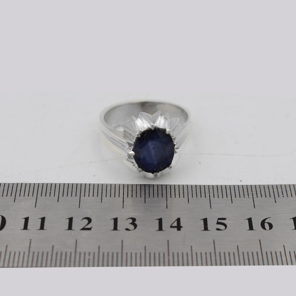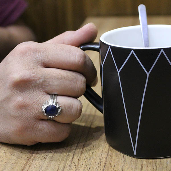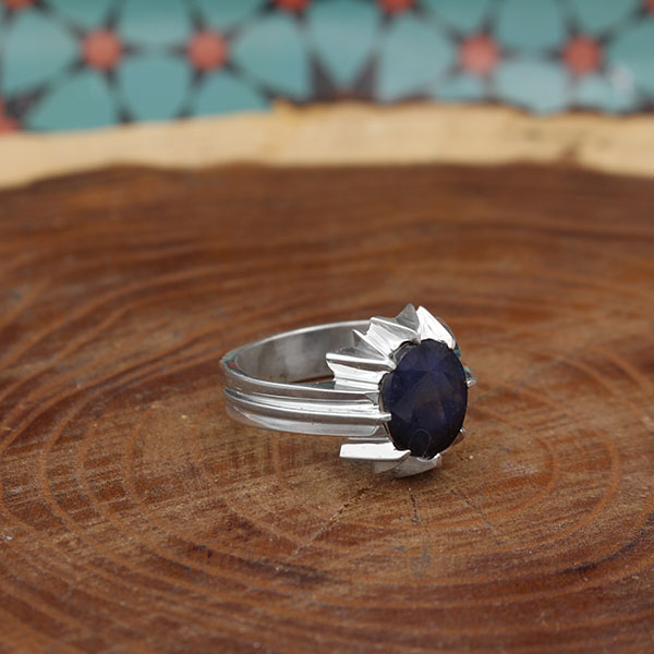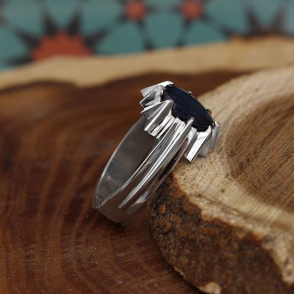 انگشتر یاقوت کبود الماس تراش نقره مردانه دست ساز طرح سیاوش
