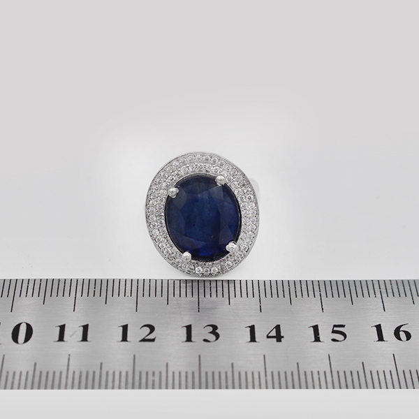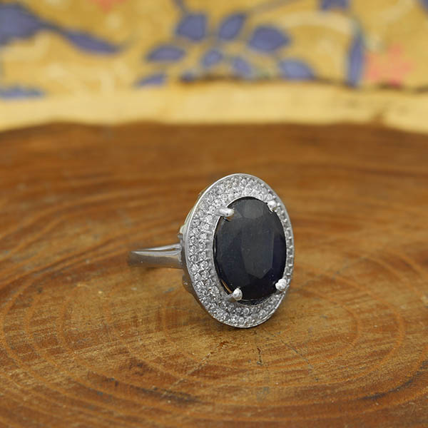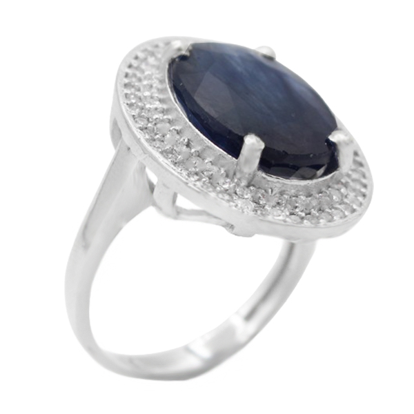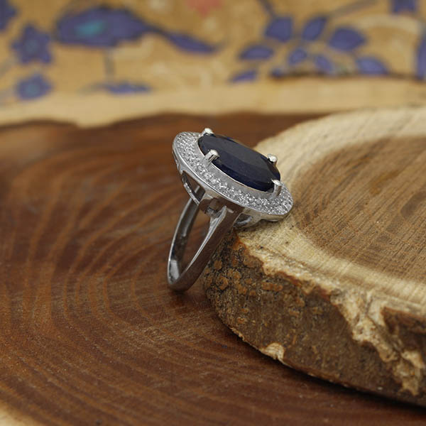 انگشتر یاقوت کبود الماس تراش نقره زنانه طرح تهمینه
