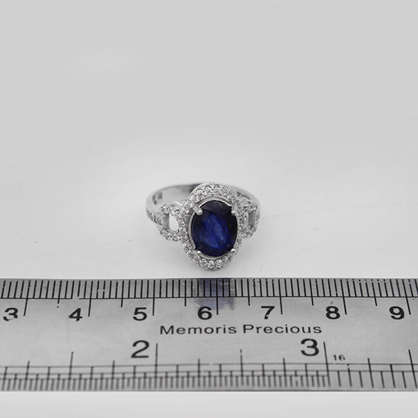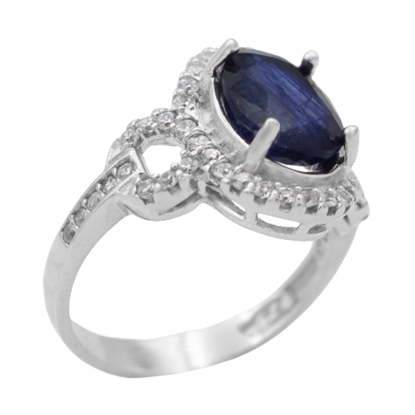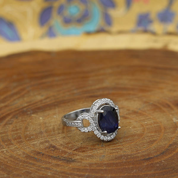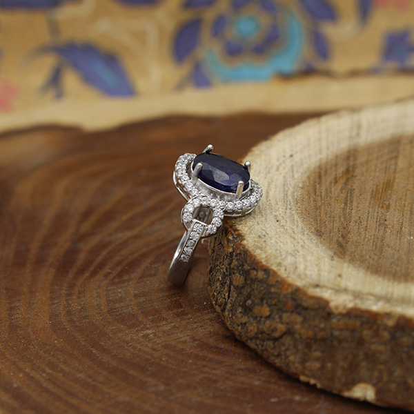 انگشتر یاقوت کبود الماس تراش نقره زنانه طرح تی تی