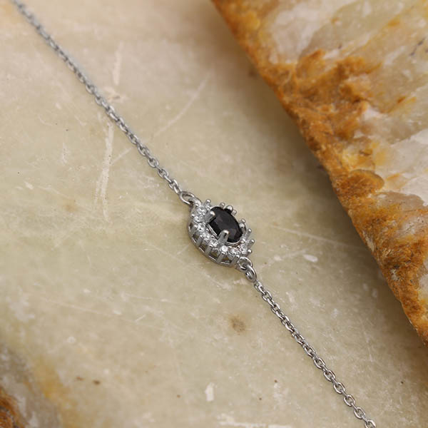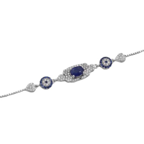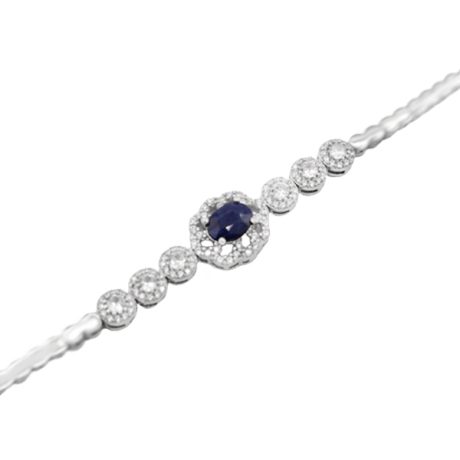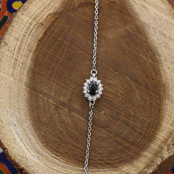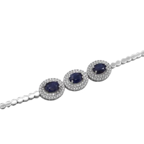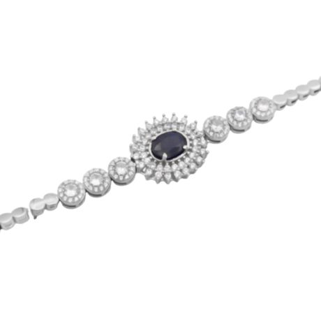 دستبند یاقوت کبود الماس تراش نقره زنانه طرح ژاله