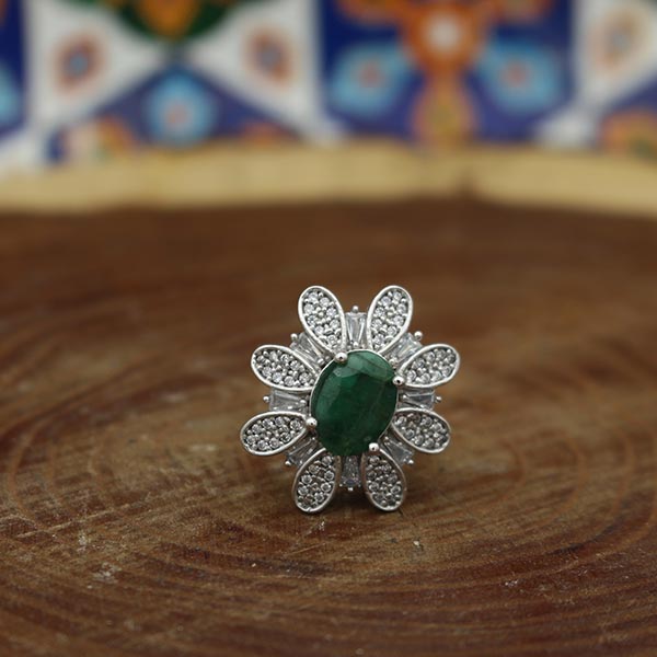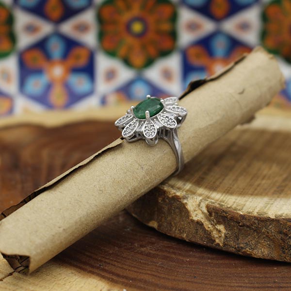 انگشتر زمرد الماس تراش نقره زنانه طرح ساوان