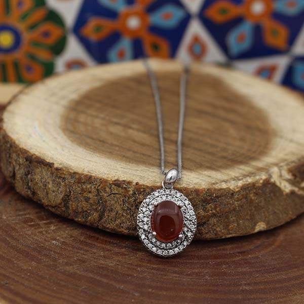 گردنبند عقیق سرخ یمنی نقره زنانه طرح صدیقه