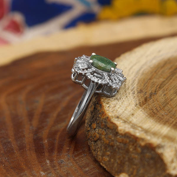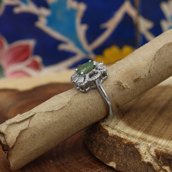 انگشتر زمرد الماس تراش نقره زنانه طرح سپیده