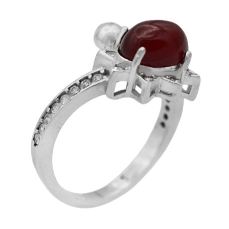 انگشتر عقیق سرخ نقره زنانه طرح سپینود ۲