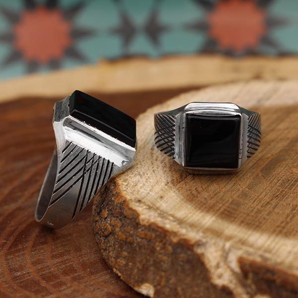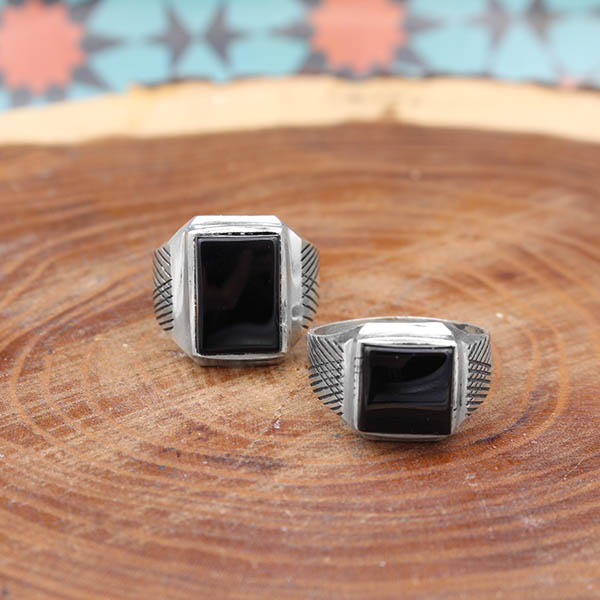 انگشتر ست زنانه و مردانه عقیق مشکی نقره دست ساز طرح حیات + حرز امام جواد (ع)