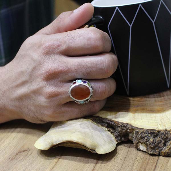 انگشتر چند سنگ نقره مردانه دست ساز طرح عابد