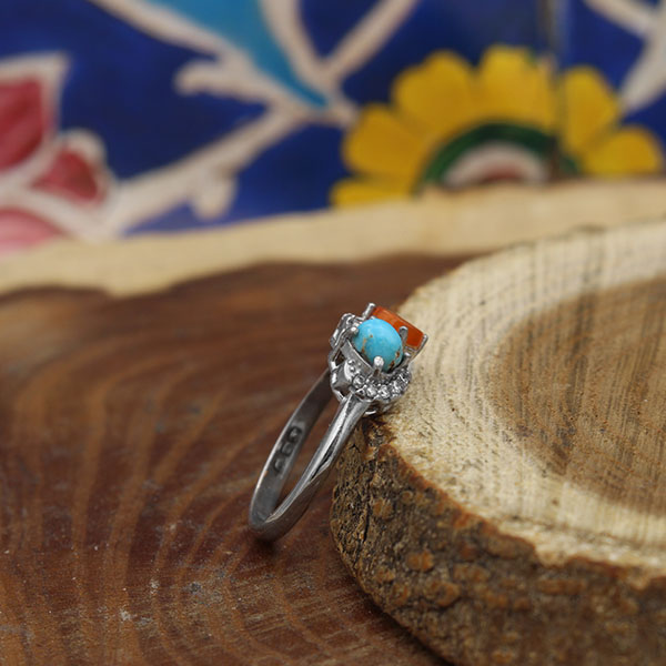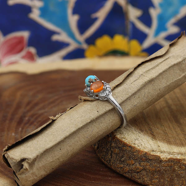 همه سنگ های این محصول اصل و معدنی هستند و عبارتند از فیروزه نیشابوری و عقیق سرخ یمنی. همچنین محصول برای هر سایز انگشتی قابل سایز شدن است.