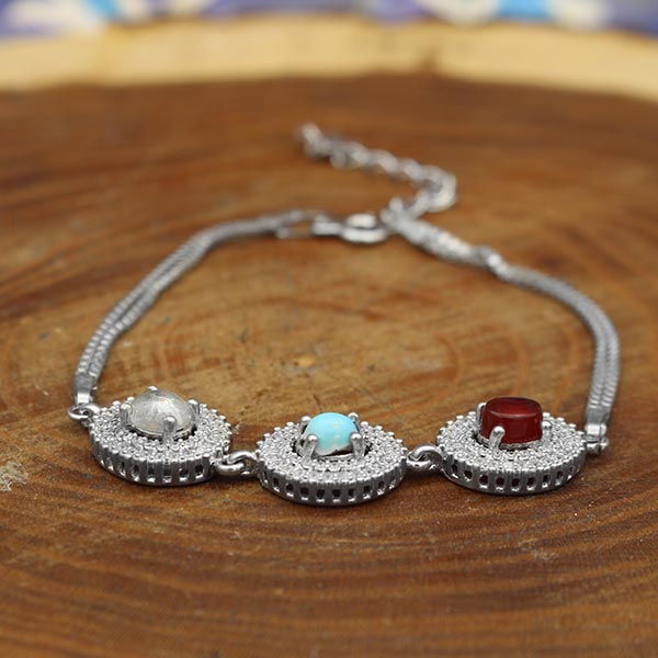 دستبند چند سنگ نقره زنانه طرح فهیمه