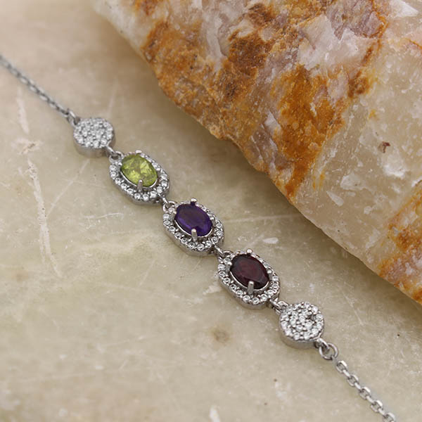 دستبند چند سنگ نقره زنانه طرح گلاره