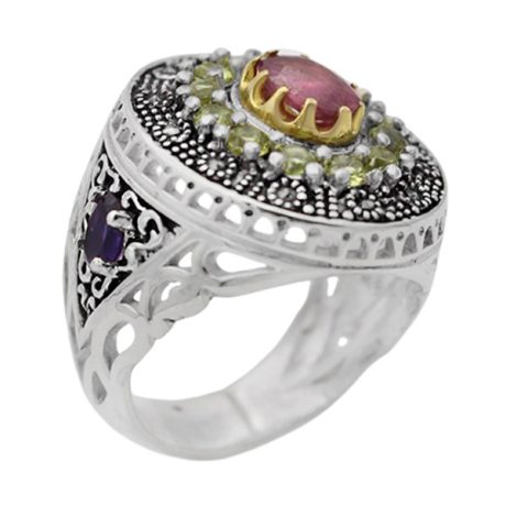 سنگ های محصول عبارتند از: عقیق سرخ، فیروزه، زمرد، حدید صینی، زبرجد، گارنت، یافوت کبود و سنگ دُر نجف. پشت نگین ها و داخل نقره این محصول حرز امام جواد (ع) قرار داده شده است که خواص مفیدی در کتب اسلامی برای آن ذکر شده است. این انگشتر پشت بسته بوده و متن حرز به هیچ عنوان با پوست دست در تماس نیست. همچنین محصول برای هر سایز انگشتی قابل سایز شدن است.