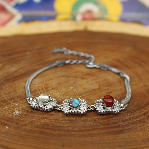 دستبند چند سنگ نقره زنانه طرح نوش آفرین
