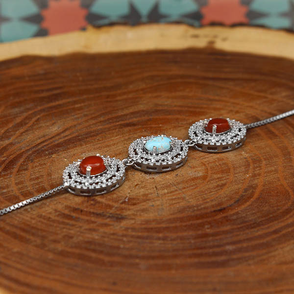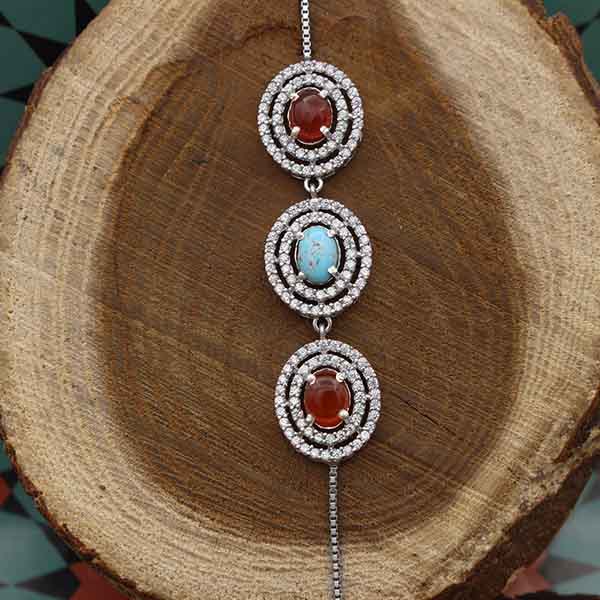 دستبند چند سنگ نقره زنانه طرح پرتو